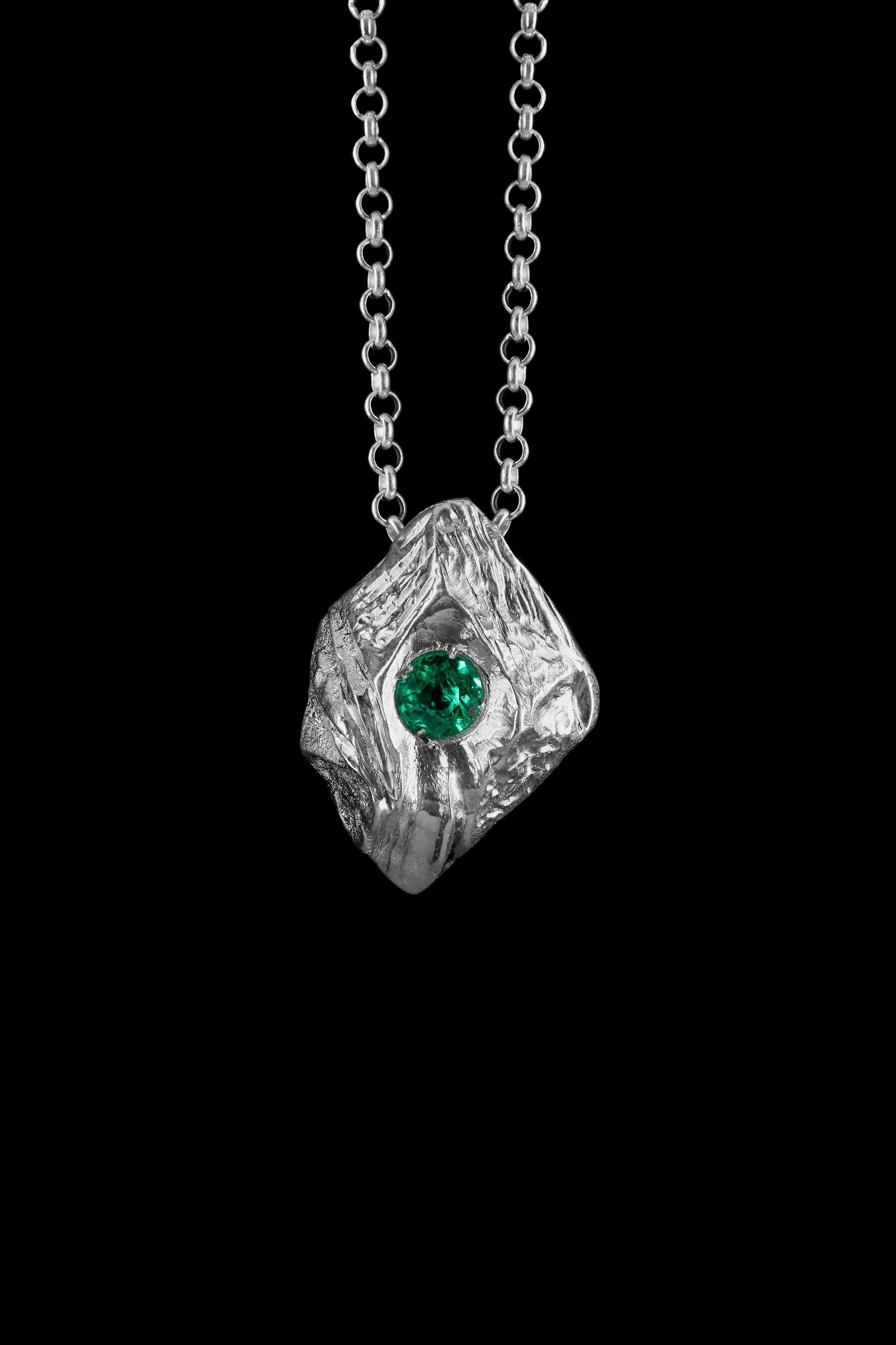 Esta serie de collares combina la fuerza de la plata con la intensidad de las esmeraldas, en formas redonda, cuadrada o en lágrima. Cada diseño abraza la piedra con delicadeza, resaltando su color vibrante y creando un contraste sofisticado y natural. Una colección que celebra la belleza pura y poderosa de cada gema con un estilo elegante y atemporal.