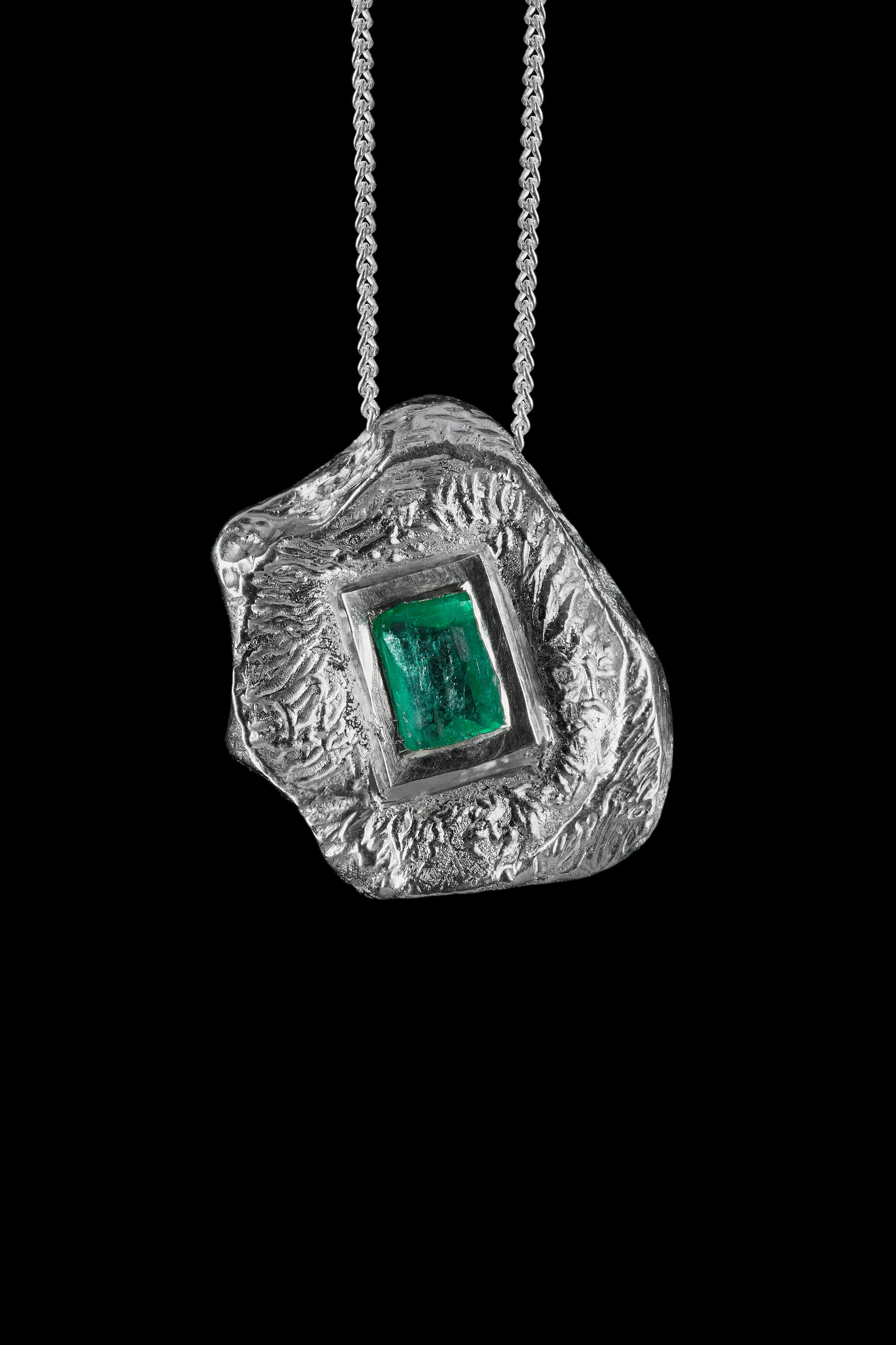 Esta serie de collares combina la fuerza de la plata con la intensidad de las esmeraldas, en formas redonda, cuadrada o en lágrima. Cada diseño abraza la piedra con delicadeza, resaltando su color vibrante y creando un contraste sofisticado y natural. Una colección que celebra la belleza pura y poderosa de cada gema con un estilo elegante y atemporal.